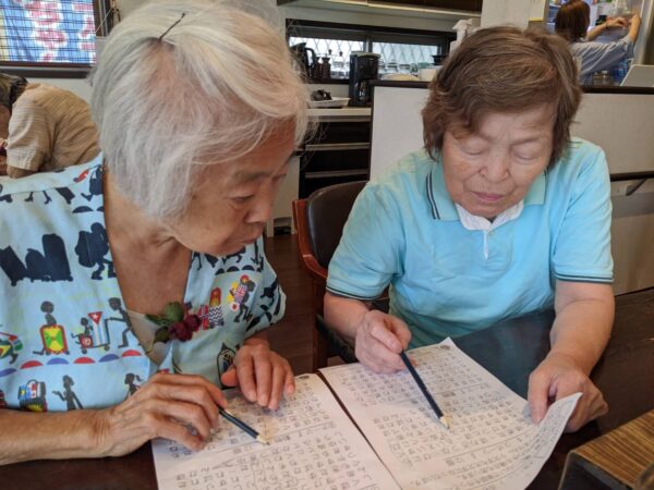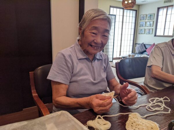 編み物に切り絵、脳トレなど、皆様和気あいあい談笑されながら制作に取り組まれております。