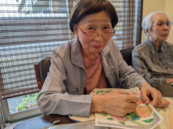 編み物に切り絵、脳トレなど、皆様和気あいあい談笑されながら制作に取り組まれております。