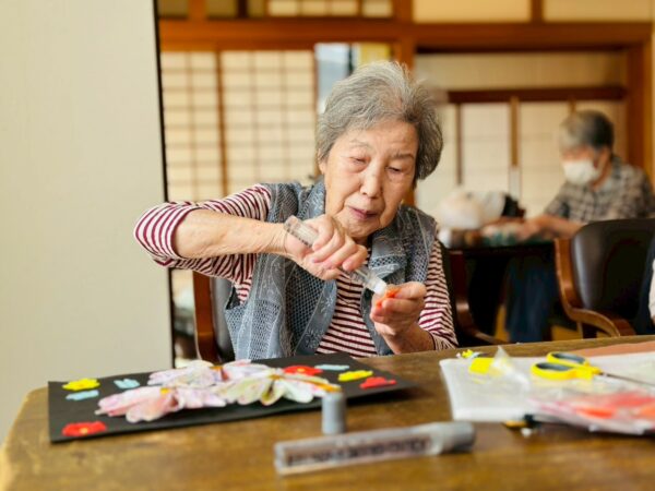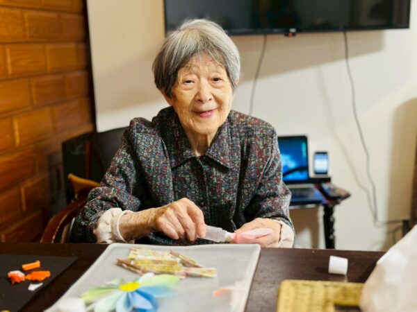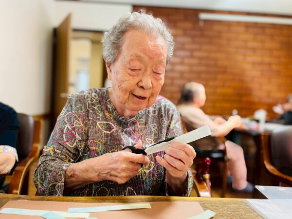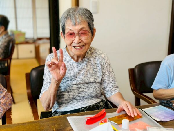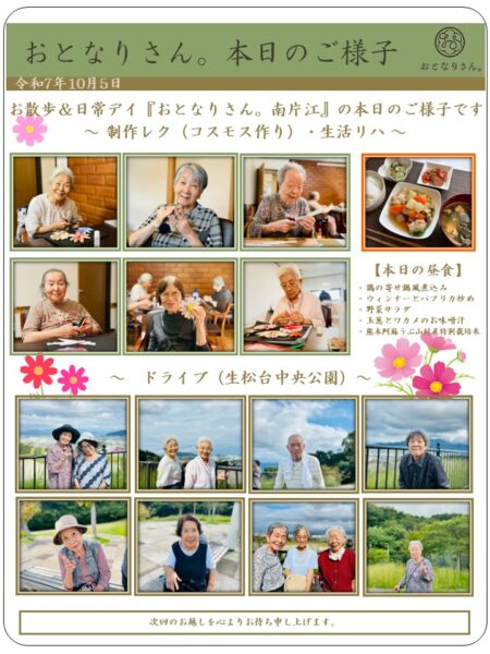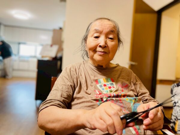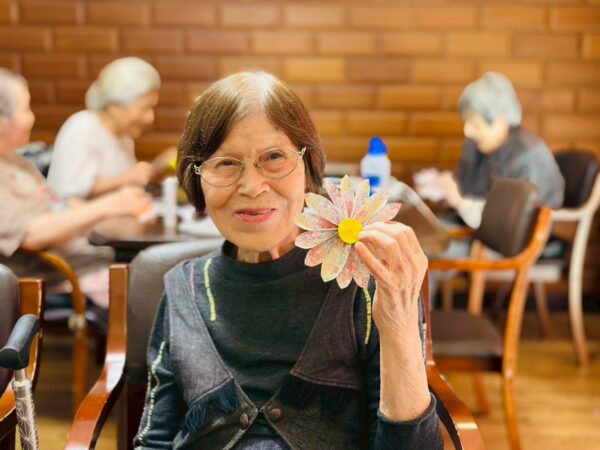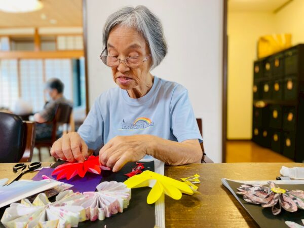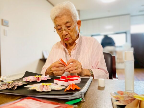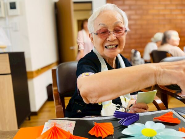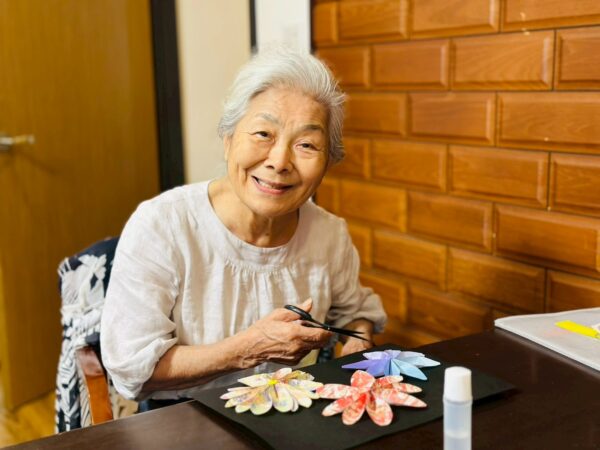午前中は、折り紙を使ってコスモス作りを致しました。