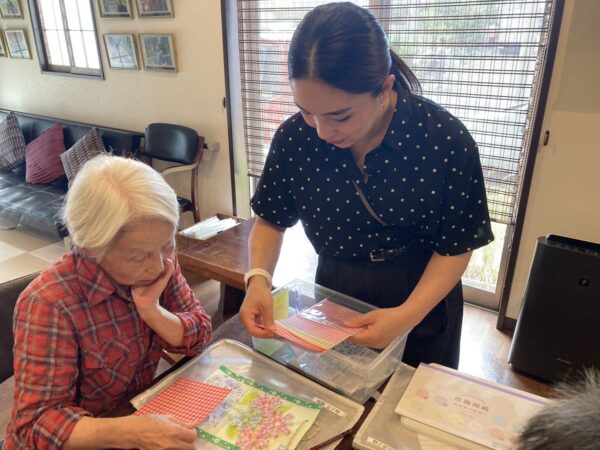 まず午前中は室内で趣味活動を行いました。黙々と切り絵に取り組まれる方やお隣の方と相談しながら制作を進められる方など、今日も和やかな雰囲気の中での活動時間でした。
