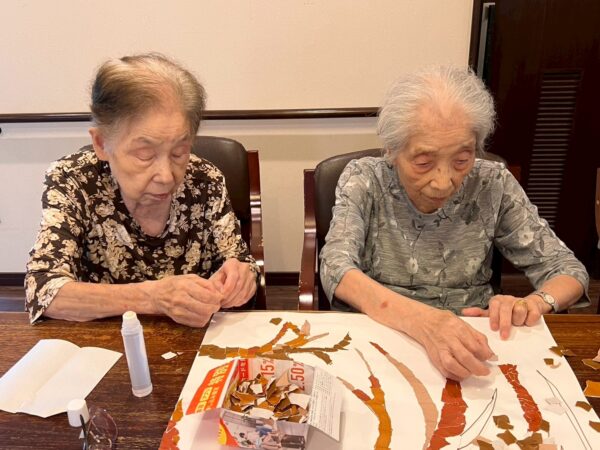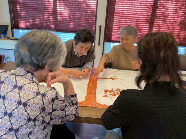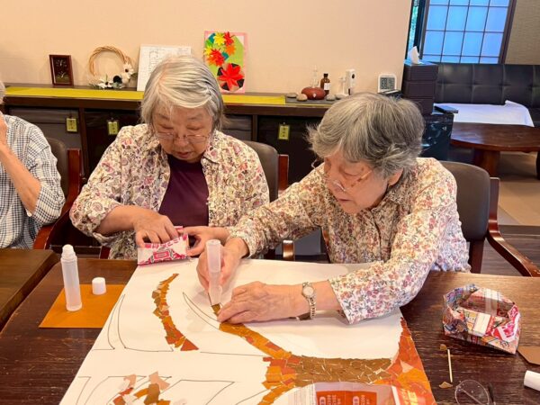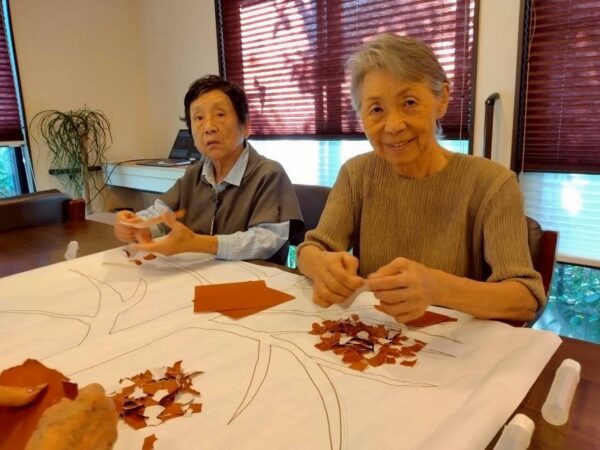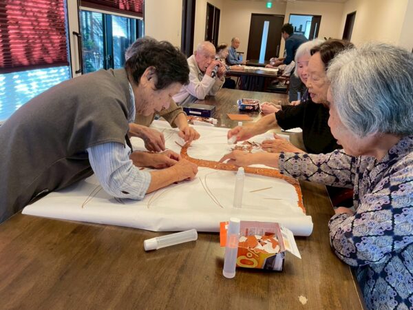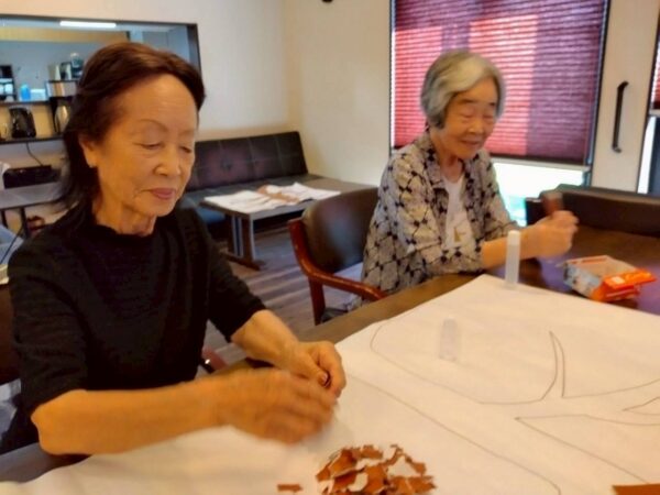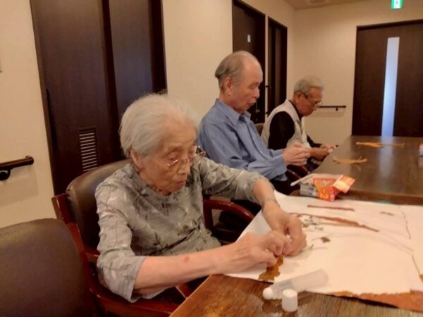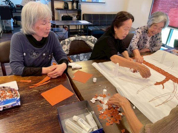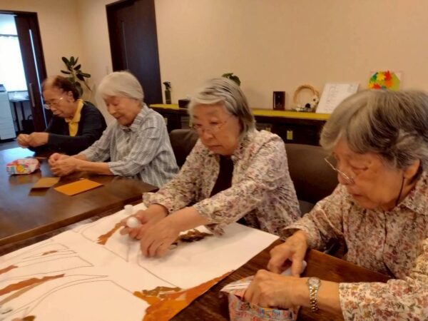 今日は幹を茶色の折り紙を使ってちぎり絵で作成していきました。