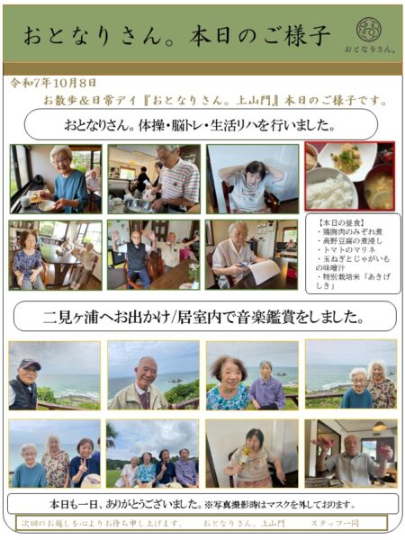 今日も一日皆さんと一緒に元気に楽しく過ごす事ができました。