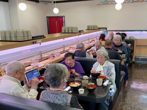 昼食は長浜市場直送のお寿司屋さん。「廻転寿司 富士丸小田部」さんで新鮮な海の幸を頂きました。