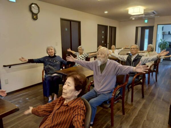 まずはしっかり体を動かすおとなりさん。体操からスタートします。