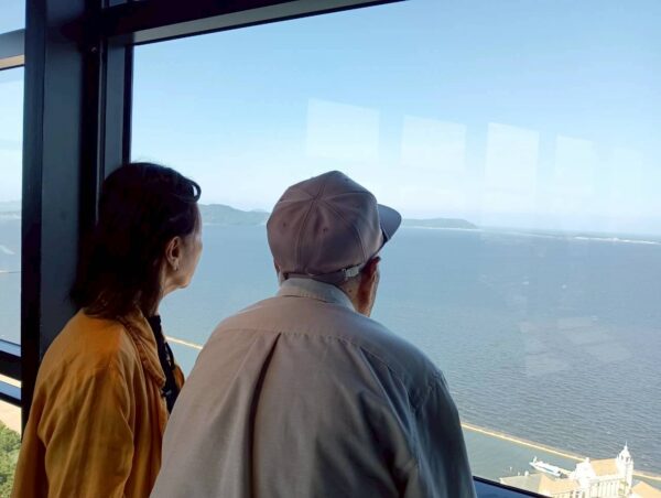 昼食後は空と海が出会う場所、福岡タワーへ出掛けました。