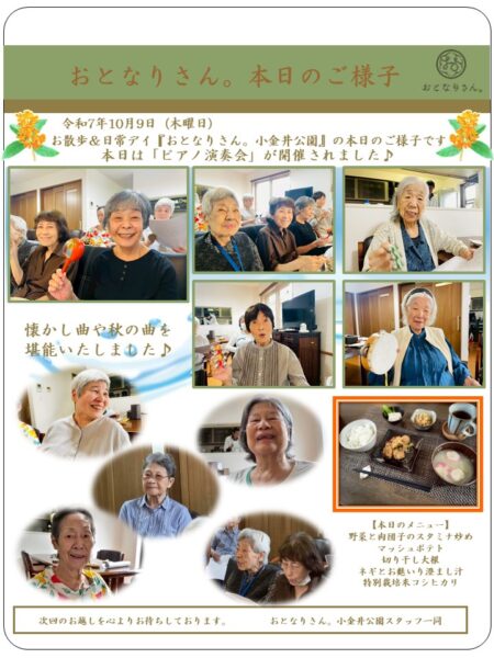 本日は「ピアノ演奏会」が開催され、秋の曲、また、懐かしい曲を
