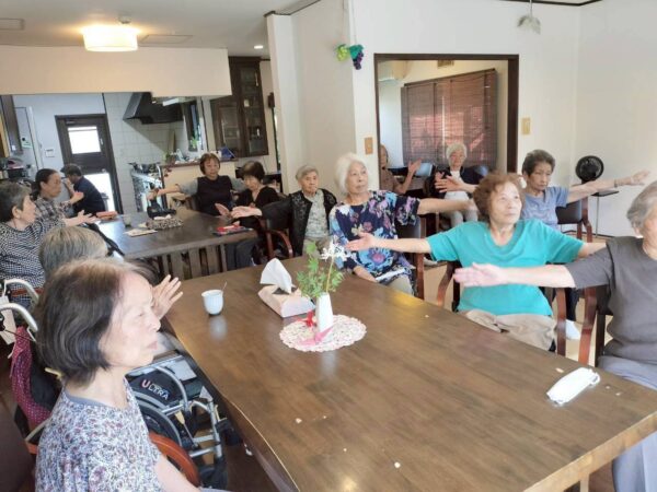 今日は活動の一環として、朝はおとなりさん。体操からスタートです。