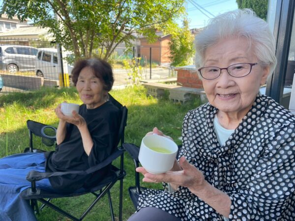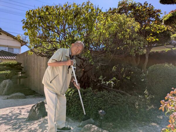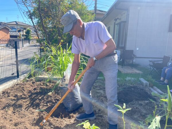 皆様こんにちは。今日は青く晴れ渡る清々しい一日でした。レク時間を利用して本日は、庭園の整備を行いました。
