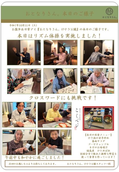 午後はいつもと違って、リズム体操とクロスワードを行いました。