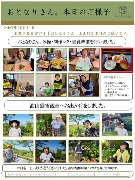 今日も一日皆さんと一緒に元気に楽しく過ごす事ができました。