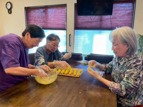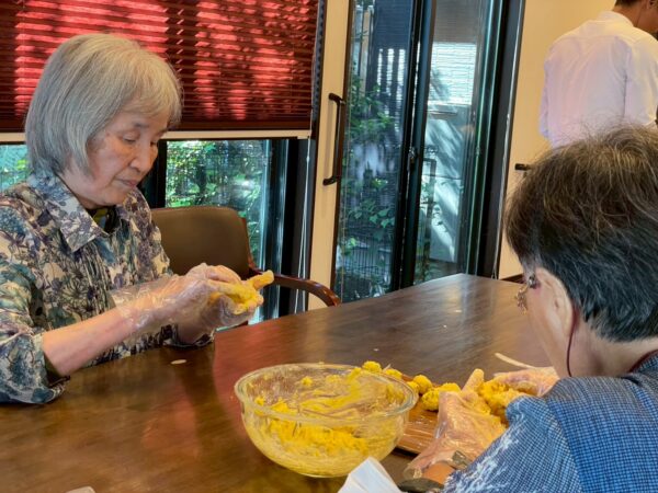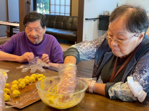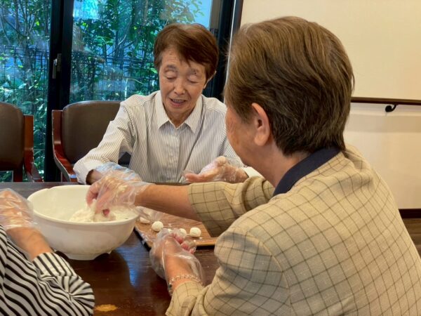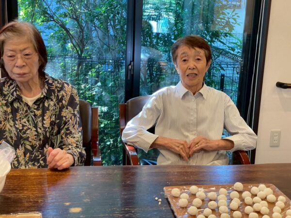 午前中は、中秋の名月は過ぎましたが、皆様とお月見団子をおやつレクで作りました。