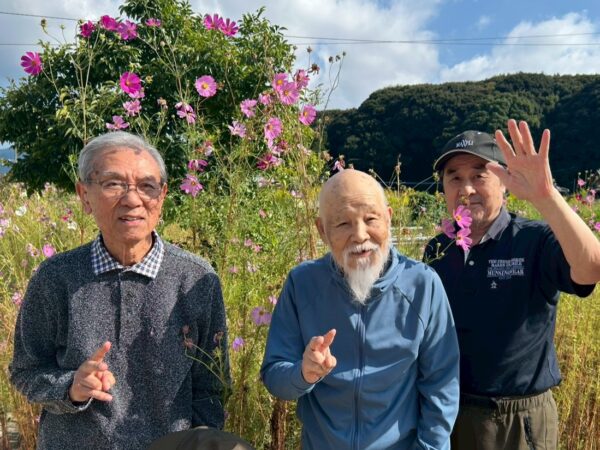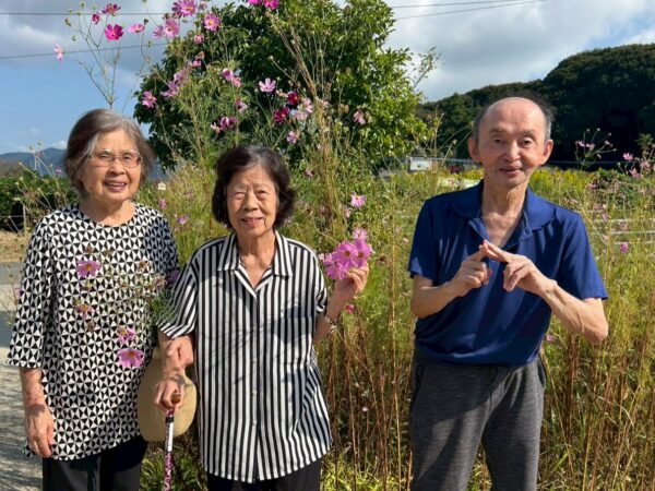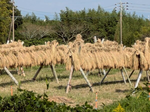 色とりどりコスモスが咲いていましたね。稲の藁干しもみられましたね。