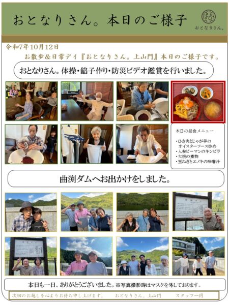 おとなりさん。上山門では今日は秋らしい活動で楽しく過ごしました。