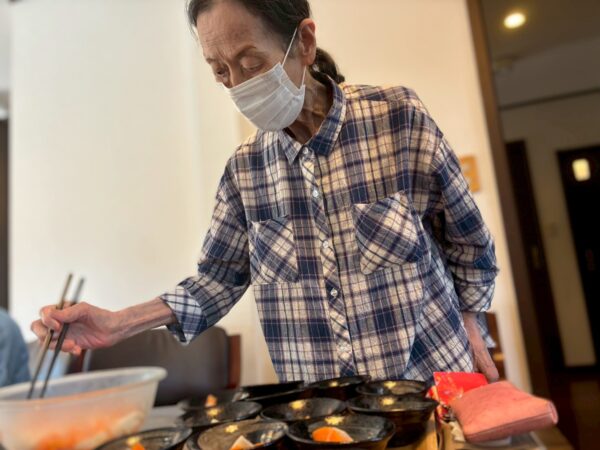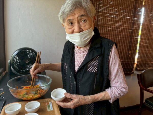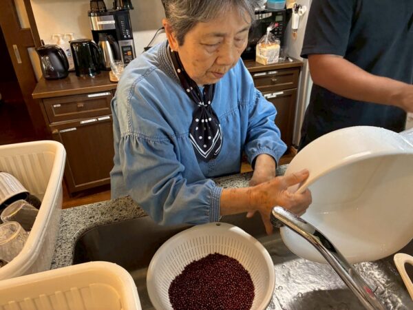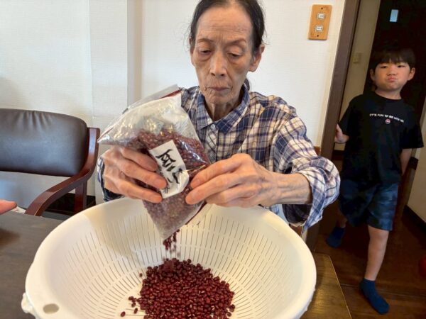 朝の体操の後は、生活リハ、小豆の餡子づくり、防災ビデオの鑑賞と多岐に渡り活動しました。