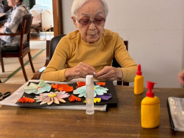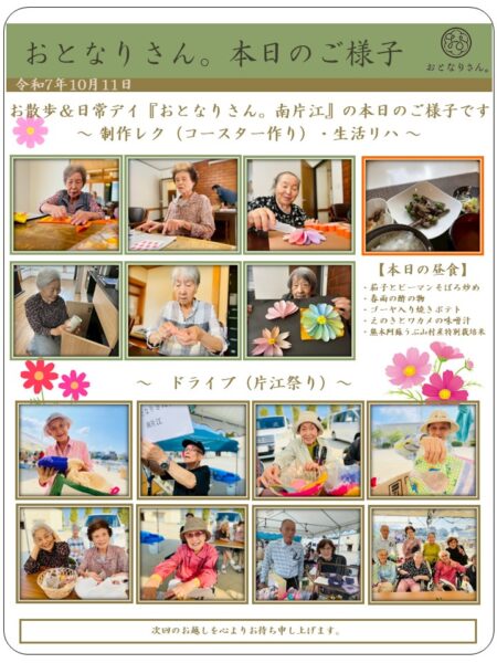 今日も元気に一日をスタートします。午前中は、お花作りとかわいいコースター作りでした。完成度が高いですね!
