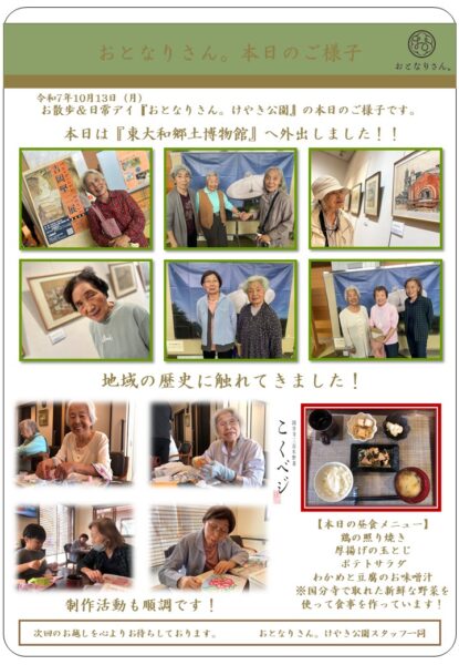 本日、おとなりさん。けやき公園では東大和市立郷土博物館へ外出しました。こちらには度々お邪魔していますが、本日は新たな企画展が開催されておりました。