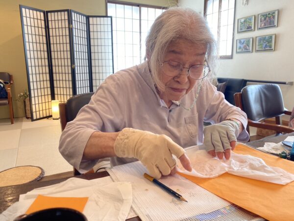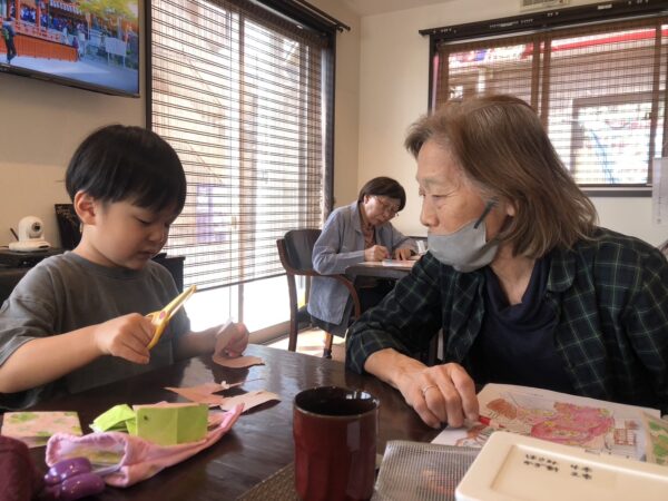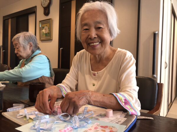 午前は趣味や制作の時間です。切り絵や編み物は指先をしっかりと使って皆様のペースで取り組んでおられます。