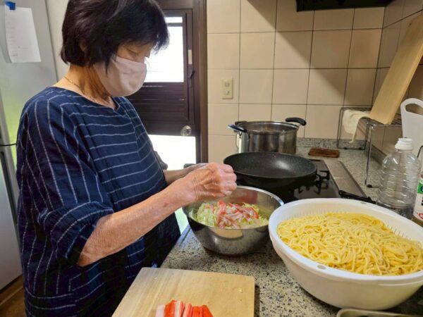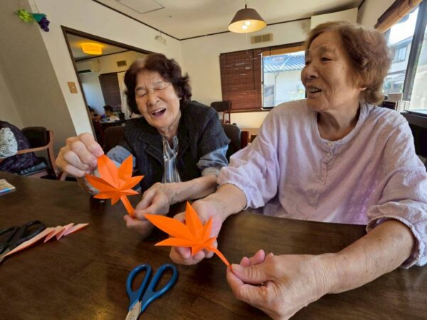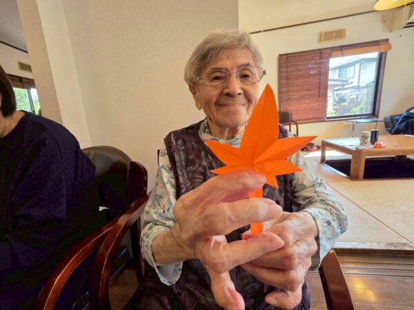 午前中は昼食準備をしたり、秋の制作やおとなりさん。体操をしました。