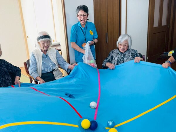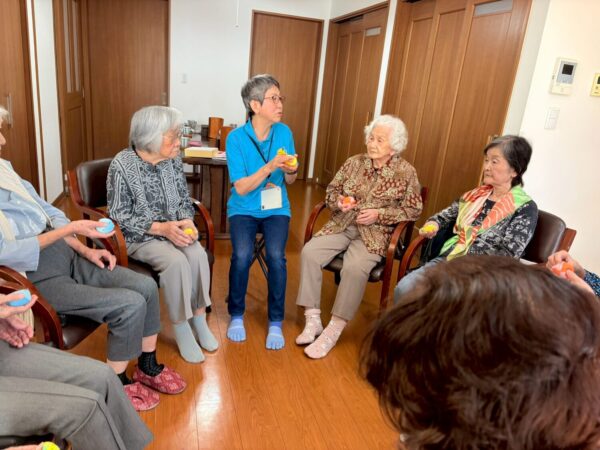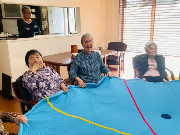 椅子に座って頭や体を使い、笑顔もたくさんのエンジョイ体操でした。