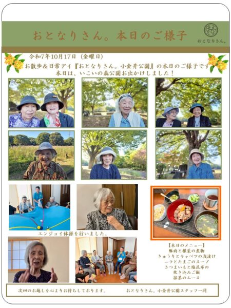 本日、おとなりさん。小金井公園では、ボランティアの先生による