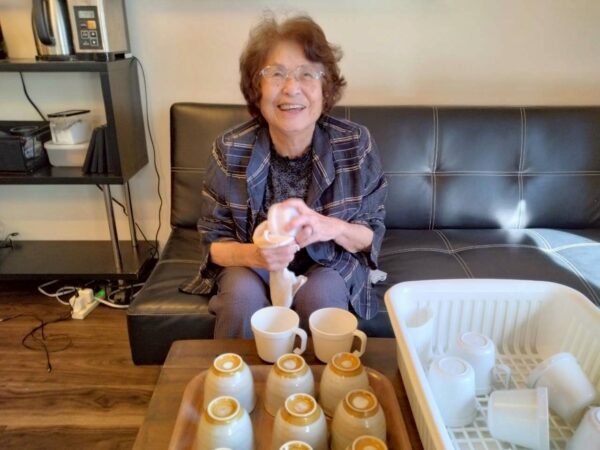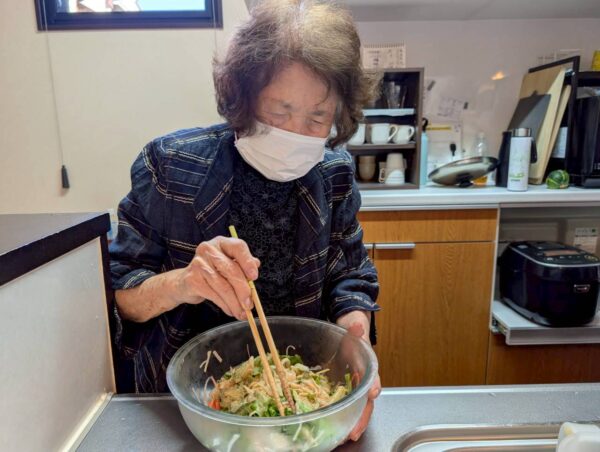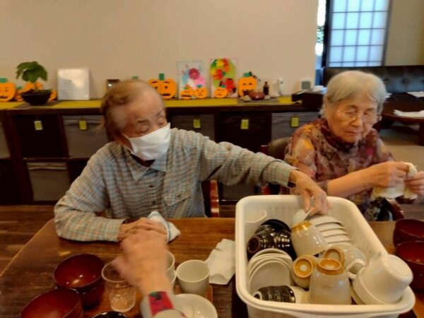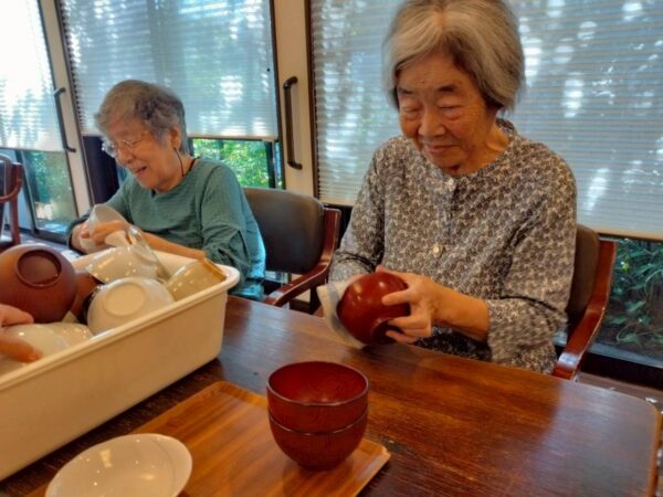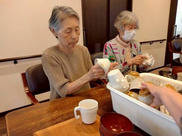 次は昼食前の生活リハビリとして料理や盛り付けのお手伝いをして下さいました。そして昼食後も食器の片付けや洗濯物などにも取り組んで頂きました。いつも有難うございます。