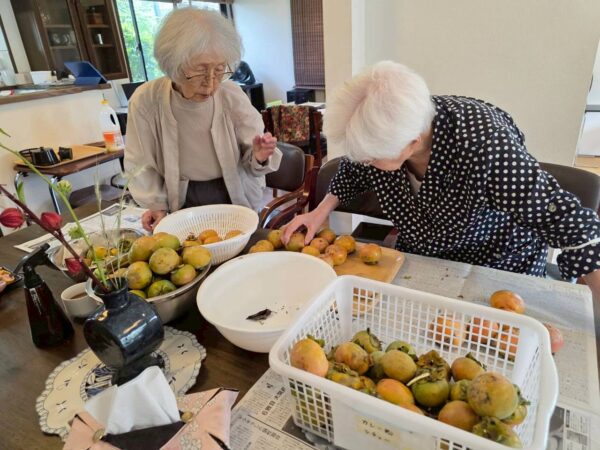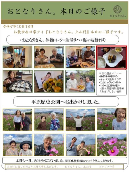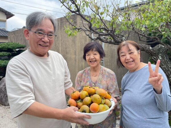 本日もおとなりさん。上山門では、柿を採ったり梅ヶ枝餅を作ったりと元気に活動をしました。