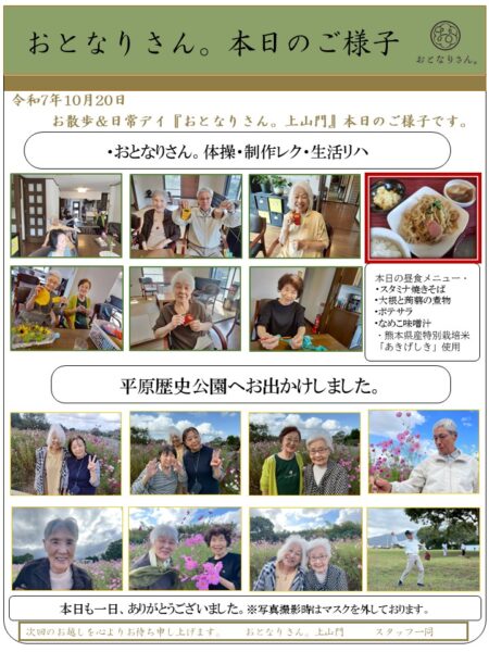 本日のご利用ありがとうございました。気温も下がり体調を壊さないように気をつけてください。