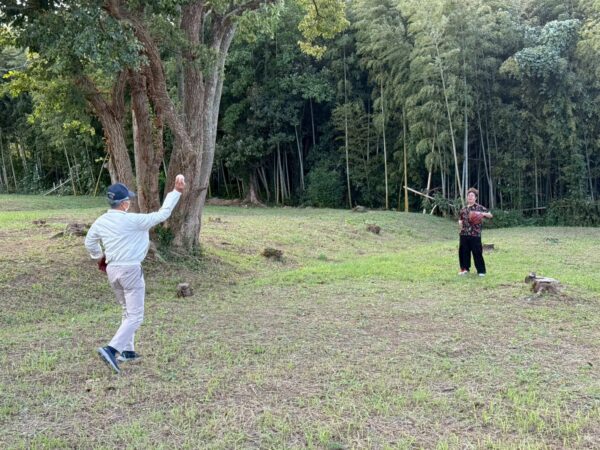 おとなりさん。上山門では今日も元気に体験からスタートです。