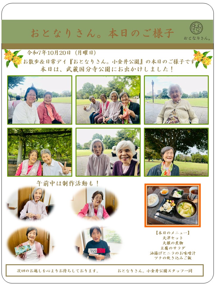 本日、おとなりさん。小金井公園では武蔵国分寺公園にお出かけしました。