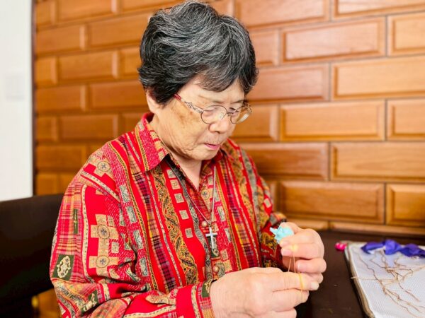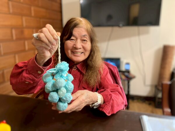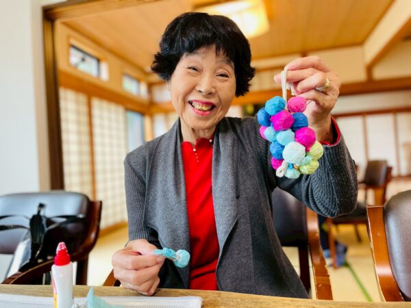 まずは、午前中の制作レクリエーションです。彩り鮮やかな秋のフルーツ「ぶとう」が完成してきましたね。