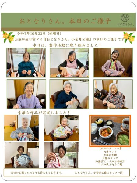 おとなりさん。小金井公園では、【小物作り】に