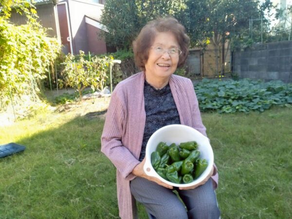 午前中、畑で実ったピーマンを摘み取って頂きました!