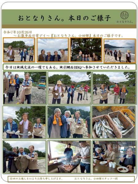 今日は地域の交流の一環でもある「地引網&BBQ」もありご利用者様と一緒に参加させていただきために二手に分かれました。