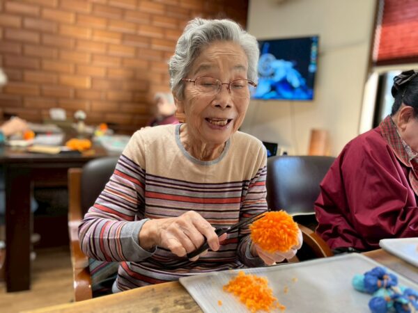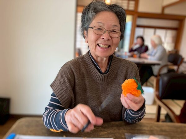 皆様、一生懸命に毛糸を巻いてハサミで形を整えておりましたね。