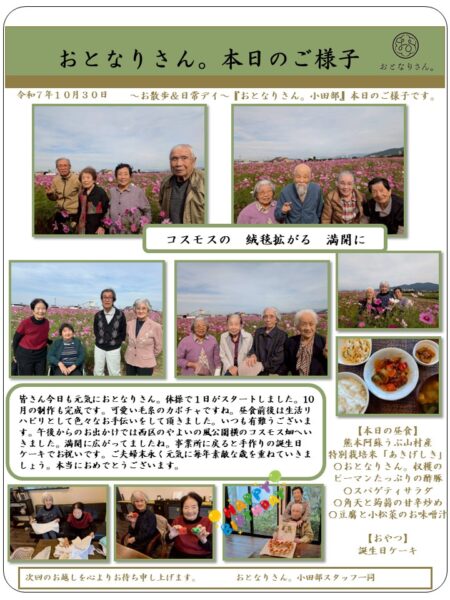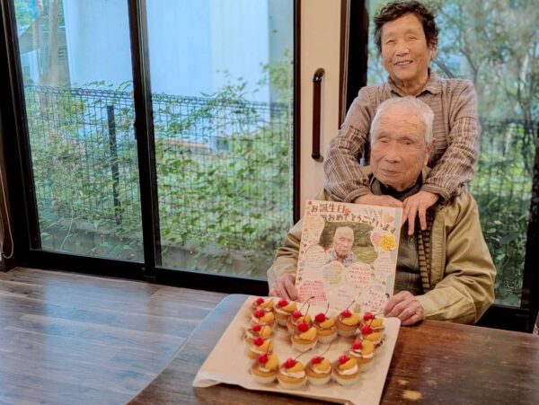 事業所に戻ると手作りの誕生日ケーキでお祝いです。ご夫婦末永く元気に毎年素敵な歳を重ねていきましょう。本当におめでとうございます。