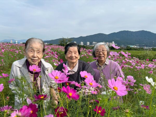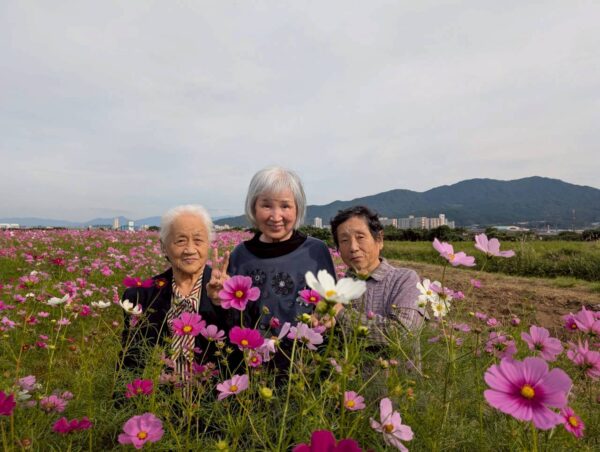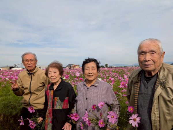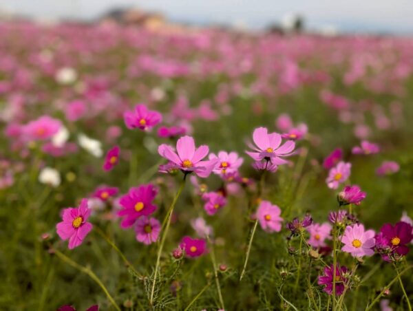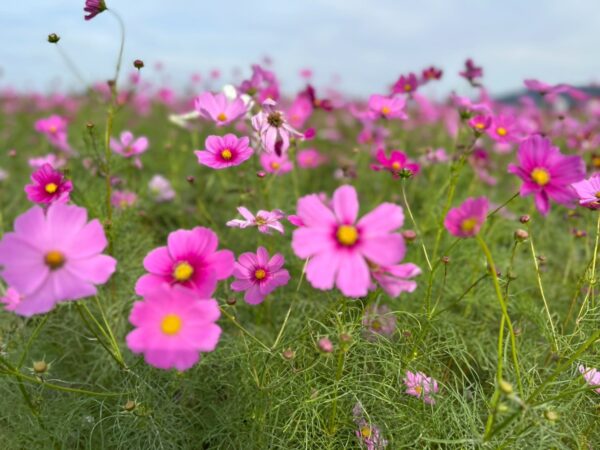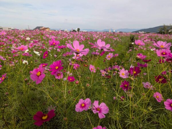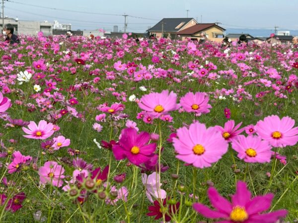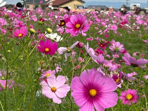 午後からのお出かけでは西区のやよいの風公園横のコスモス畑へいきました。満開に広がっており沢山のお客さんもいて賑やかでしたね。一面のコスモス絨毯に感動しながらよく歩きました。