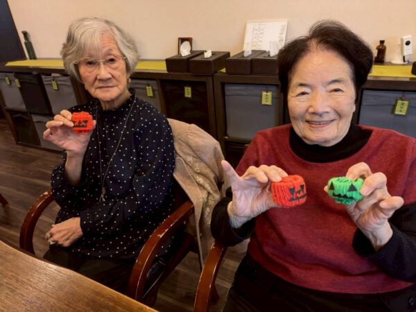 今日も元気におとなりさん。体操で元気に1日がスタートしました。10月の制作も完成です。可愛い毛糸のカボチャが素敵ですね。