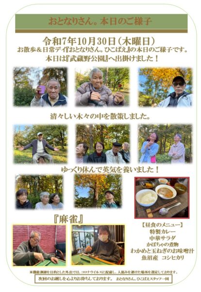 小金井市のデイサービス~お散歩&日常デイ~ おとなりさん。ひこばえ