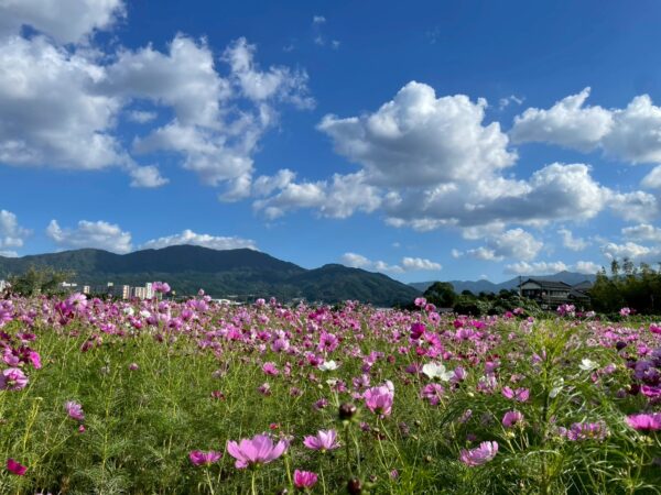 秋空の下心地よい風になびく花のウエーブは素敵でした!