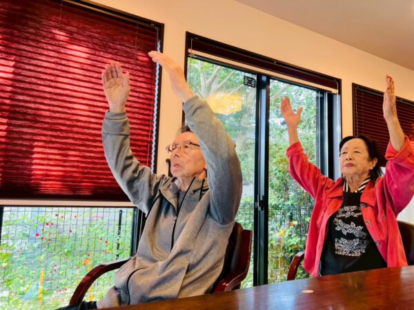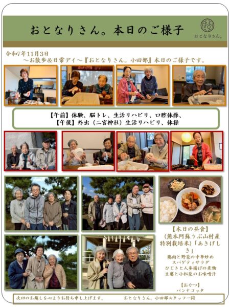今日も秋の涼しさと時折暖かい日差しを感じられる気持ちの良い1日でした。さっそくおとなりさん。体操で元気に運動してスタートです。