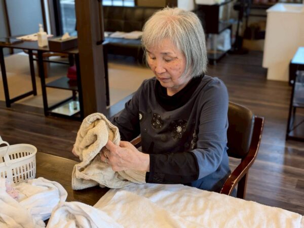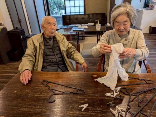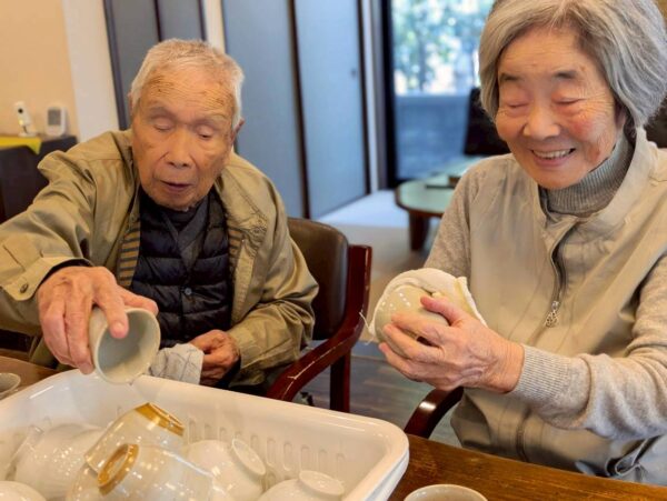 体操の後は都道府県クイズの脳トレです。各都道府県の有名なものをヒントに回答してもらいました。皆さん若いころ行った旅行の思い出が蘇ってきましたね。そして昼食前後は生活リハビリとして沢山のお手伝いをして下さいました。いつも感謝です。