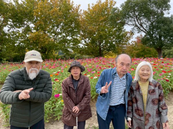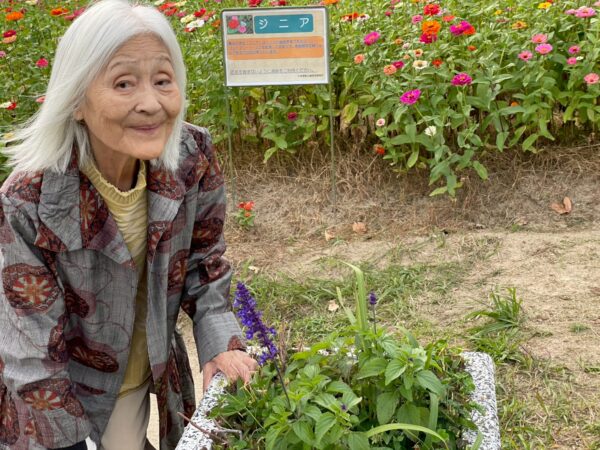 色どりの 花に囲まれ 笑顔満開