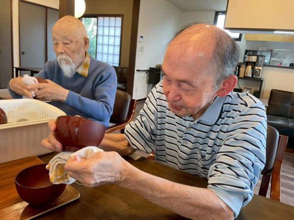 昼食前後は生活リハビリとして洗濯物をたたんでくださったり、料理の盛り付けや配膳、洗い物、食器の片付け等沢山のお手伝いをしてくださいました。