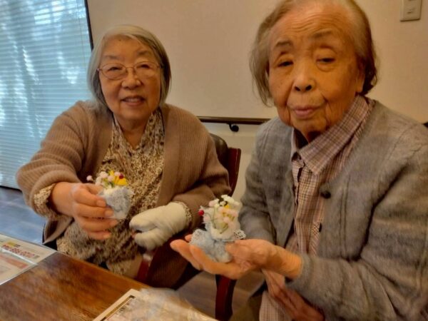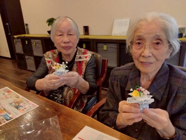 土台となる紙粘土を使いこねたりつまんだり、ねじったりと皆様久しぶりの粘土の作業に「難しいね」「なつかしいね」「個性が出るね」等と童心に戻って和気あいあいと皆様思い思いの作品を作って楽しんで下さっていました。