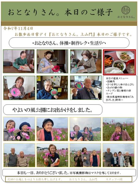 おとなりさん。上山門では、今日も元気に体操からスタート致しました。