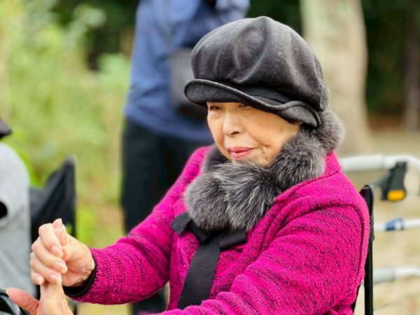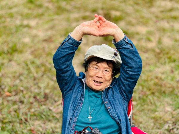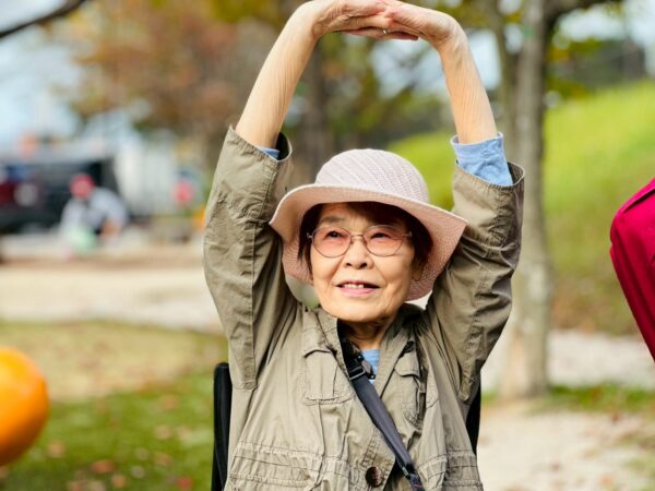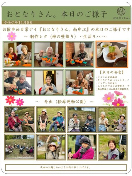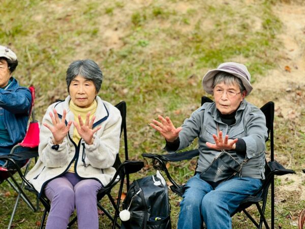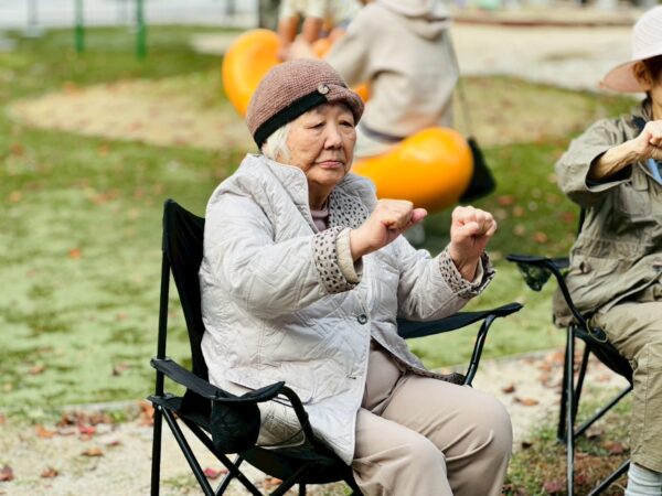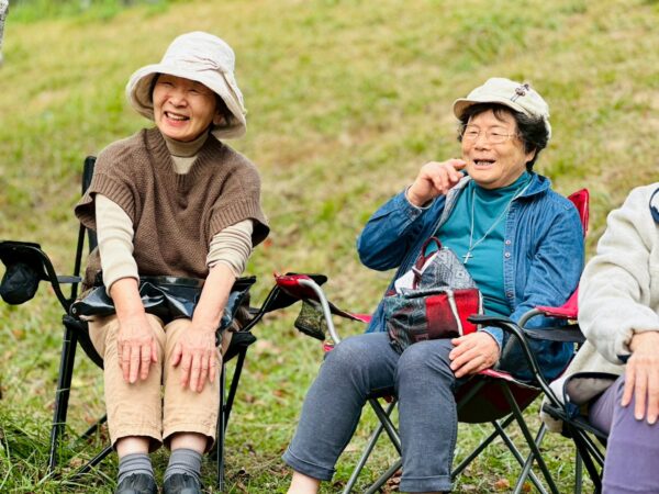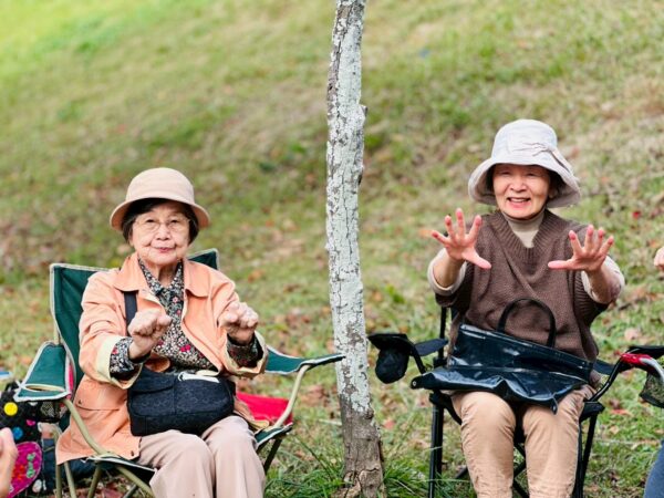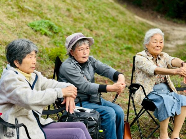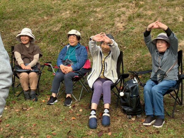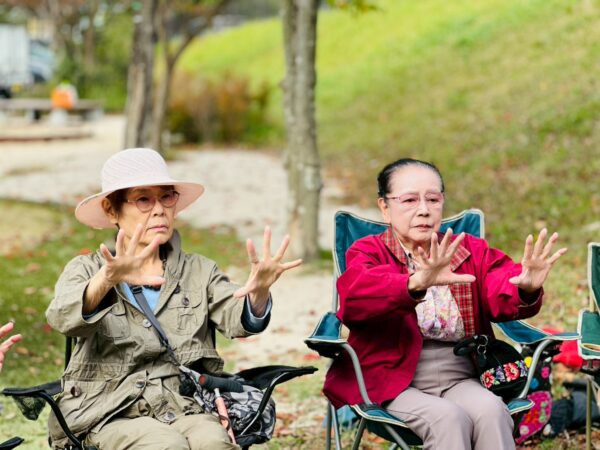 少し肌寒い気候でしたが、ご利用者様は元気いっぱいです。広場で椅子を広げて身体を動かしました。