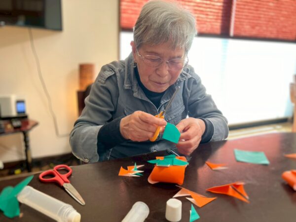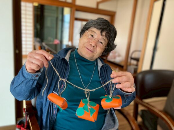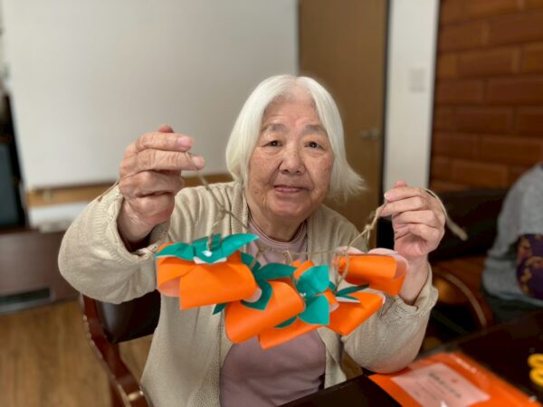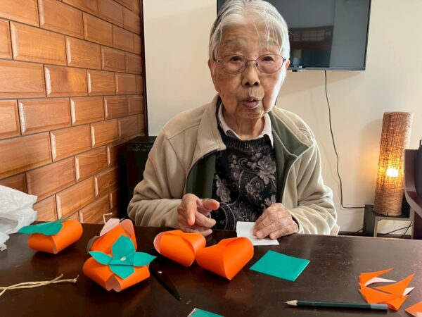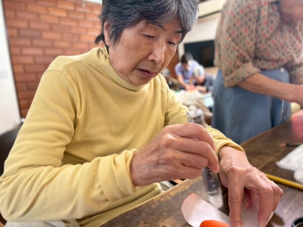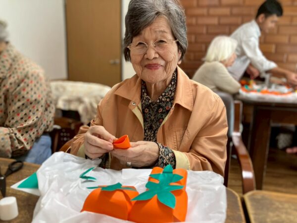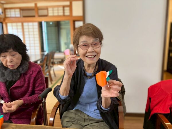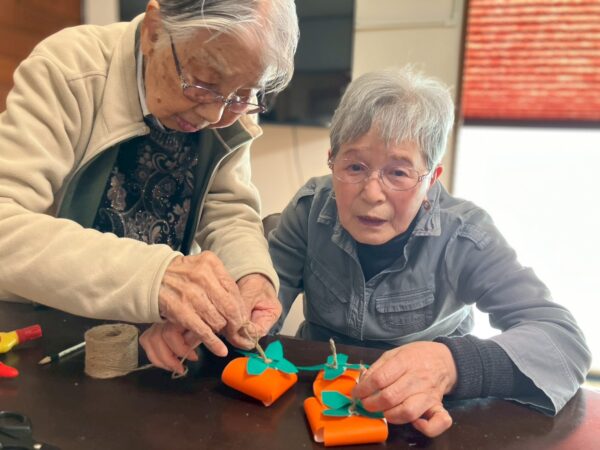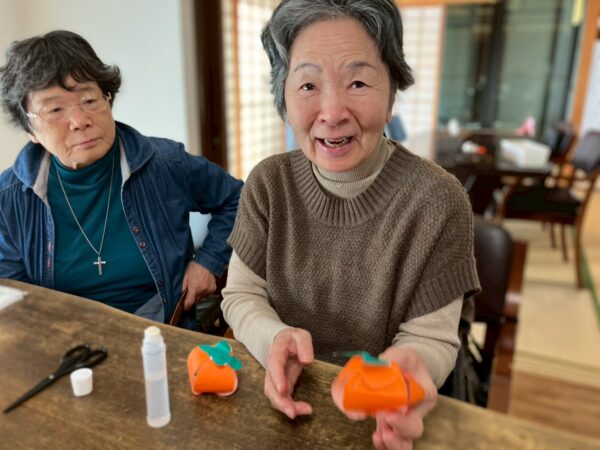 午前中は、柿の壁飾りの制作です。完成してきましたね。