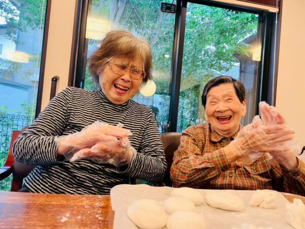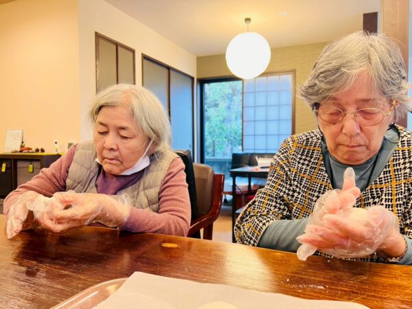 午後は雨が降ったり止んだりなので室内でカラオケ大会・おやつ作りをしました。