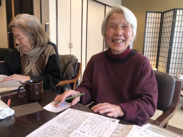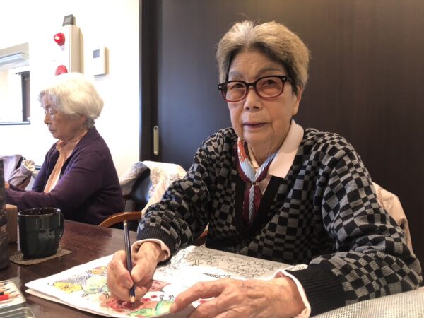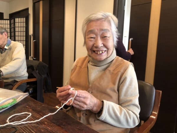 午前中は趣味制作活動です。脳トレ、編み物、縫い物と多岐にわたる活動内容ですが、皆様和気あいあいと取り組まれておりました。