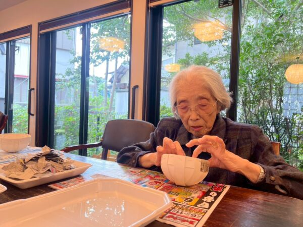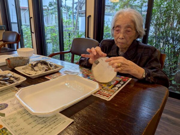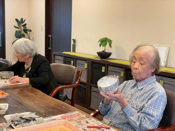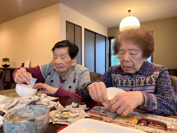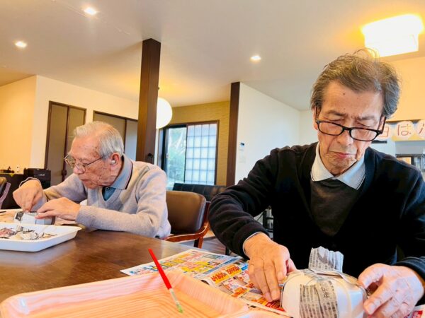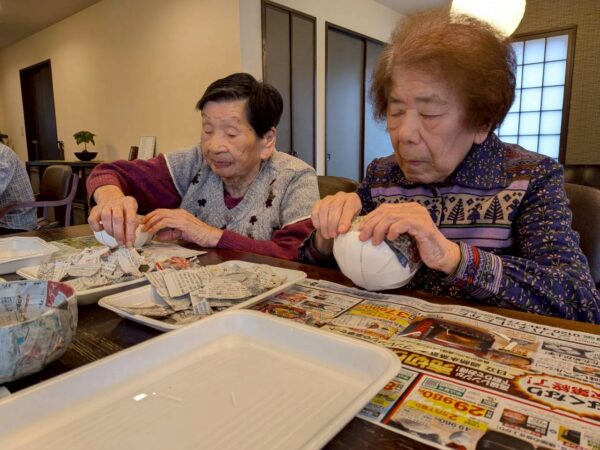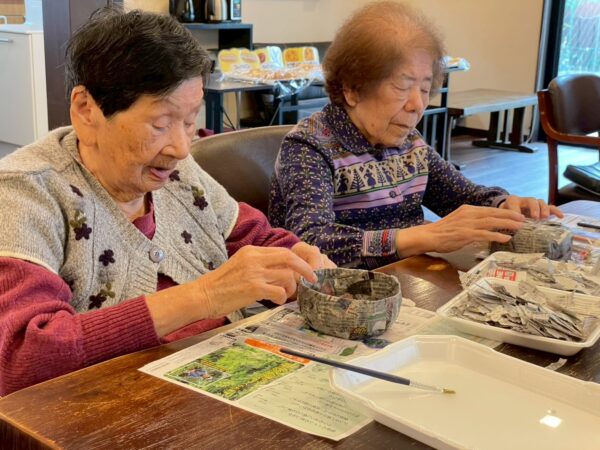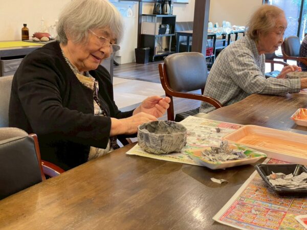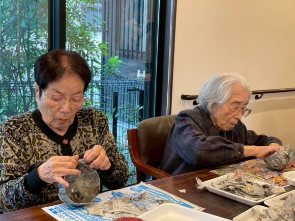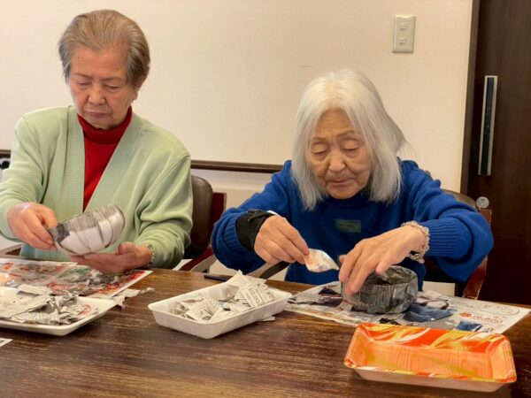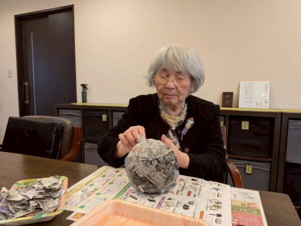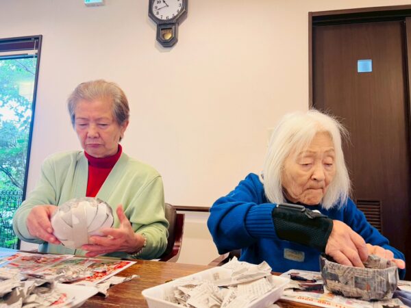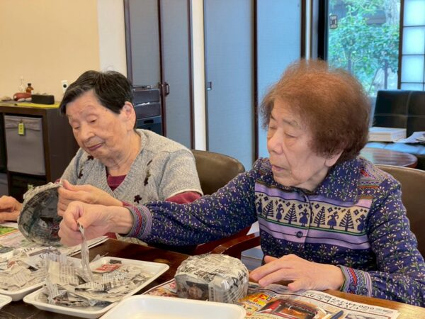 まずは、骨組みに新聞紙を張り付けて肉付けしていきます。